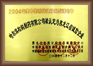 哈尔滨松鹤制药有限公司被认定为黑龙江省诚信企业